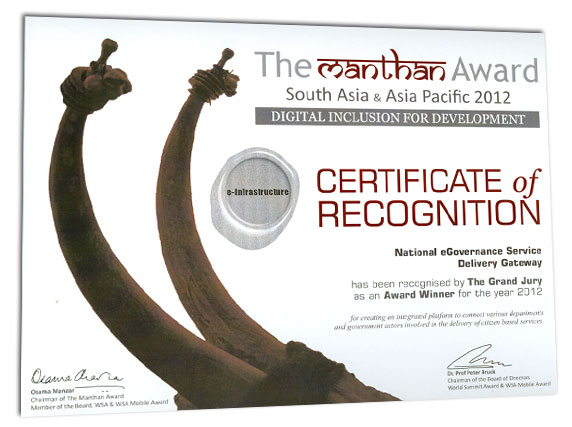 Manthan Award is a first of its kind initiative in India to recognize the best practices in e-Content and Creativity. It was launched on 10th October '2004, by Digital Empowerment Foundation in partnership with World Summit Award, Department of Information Technology, Govt. of India, and various other stakeholders like civil society members, media and other similar organisations engaged in promoting digital content inclusiveness in the whole of South Asian & Asia Pacific nation states for development.