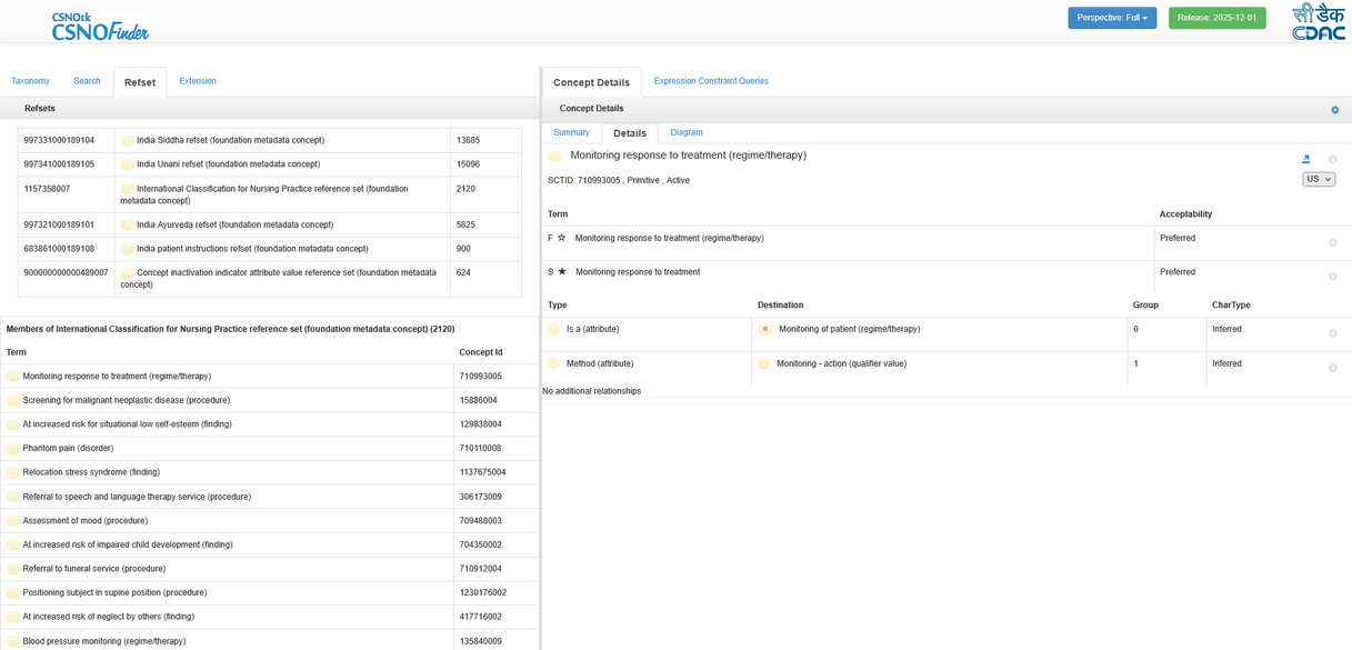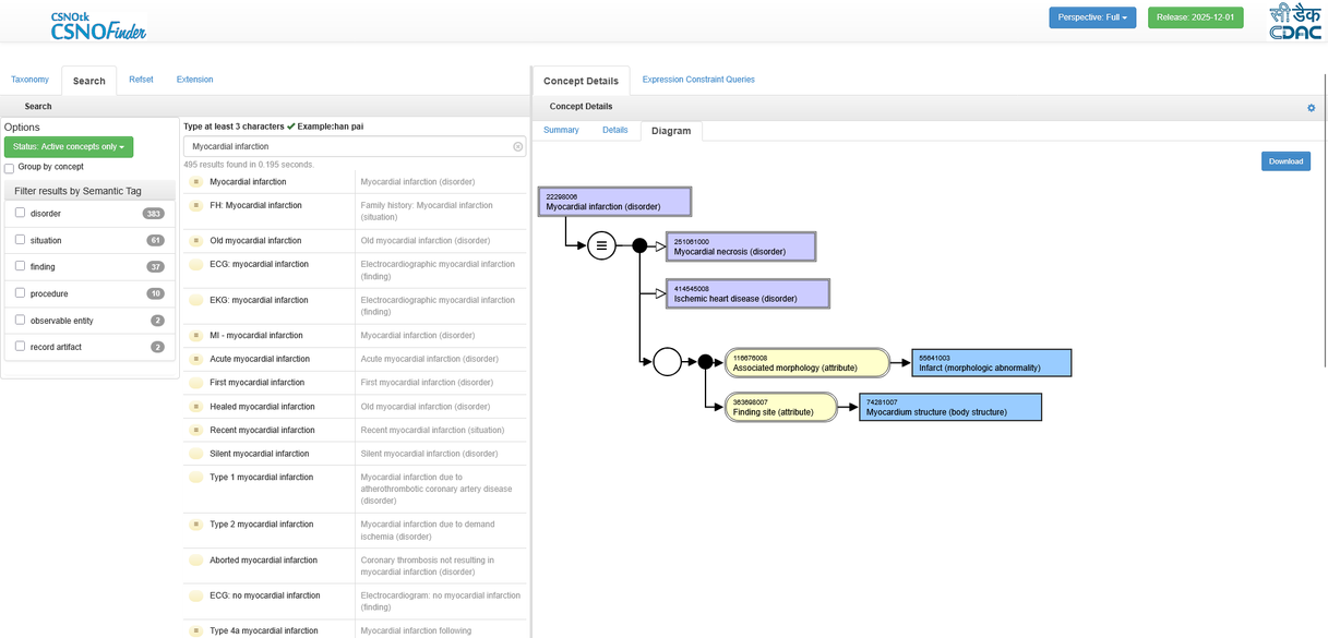 - Provides facility to explore SNOMED CT concepts for study/research