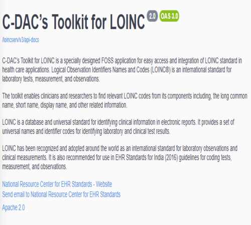 C-DAC's Toolkit for LOINC is a specially designed FOSS toolkit for easy access and integration of LOINC standard in health care applications. Logical Observation Identifiers Names and Codes (LOINC®) is an international standard for identifying health measurements, observations, and documents.
