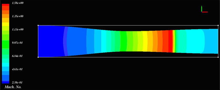 Compressible fluid flow in a Convergent Divergent Nozzle at a Mach number of 0.75