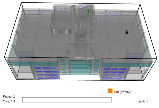 A fire dynamics simulator (FDS) code has been used for simulation studies of fire and smoke spread in a multi-storied building. The existing natural ventilation system has been found to be inefficient in smoke extraction. To safeguard the stairs from smoke accumulation, various methodologies of mechanical ventilation have been adopted to analyze the situation. Suggestions for improving the safety of the building have been provided.