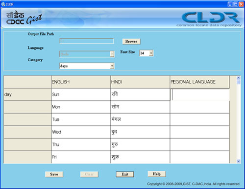 CLDR is the largest and most extensive standard repository of locale data. This data is used for software internationalization and localization i.e. adapting software to the conventions of different languages. Indian language Data for common software tasks as formatting of dates, times, time zones, numbers, and currency values; sorting text; choosing languages or countries by name; and many other categories can be entered. It creates UNICODE compliant linguistic resource for eventual development of high-end NLP tools and technologies.