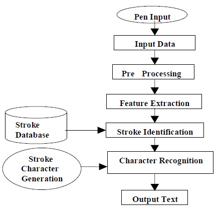 Handwritten character is the aggregation of sequence of strokes. In our approach, an on-line handwritten character is characterized by structure- or- shape-based representation of a stroke in which a stroke is represented as a string of shape features. Using this string representation, an unknown stroke is identified by comparing it with a database of strokes using elastic matching technique On-line handwriting data are a dynamic, digitized representation of a (digital) pen movement, generally describing sequential information about position, velocity, acceleration or even pen angles as a function of time. On line handwriting recognition takes on a novel significance in the context of Indian languages. At present word processing in Indian languages can be a troublesome experience, considering the restriction on use of the regular keyboard, designed for English. Keyboard mapping systems are used in case of Indian languages, which are not convenient to use. A comfortable solution would be to let the user write in a natural, normal fashion using a suitable pen-like device and let the computer do the rest. That transfers the burden of learning keyboard mappings from the user to the computer.