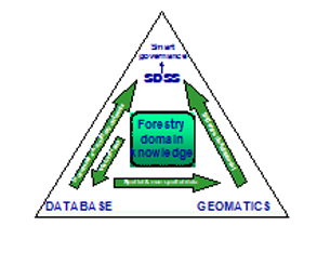 In a broad sense information systems are categorized in either Management Information System (MIS) or Spatial Decision Support System (SDSS). Both the systems are important from management point of view; however, many of the previously developed MIS do not have the spatial component, and therefore lack analytic capability. SDSS on the other hand have spatial component and use inherent capabilities of 'Geographical Information System' (GIS) which provides better analytic capabilities and visualization in the form of tailor made maps. This facilitates decision making to a great extant. In a typical SDSS for forest management, the vision/need comes from the forestry experts (scientists, researchers, administrators); which ultimately gets transformed into the database; efficient use of this dataset through GIS and Information Technology (IT) can be extremely helpful in deriving most meaningful information necessary for better governance. (fig. 1) (Kale et al., 2010)