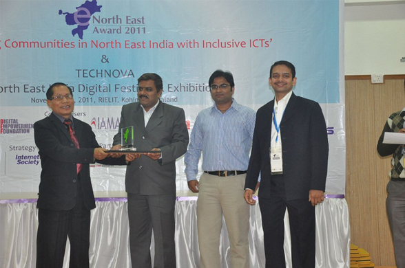 In recognition to the innovativeness of the product 'Aranya' was conferred the prestigious eNorth-East Award 2011 in the category of 'Innovative Department / PSU'. The award was handed over in the 2nd eNorth East Award Summit Digital Festival at the Regional Institute of e-Learning Information Technology (RIELIT), Kohima on the 25th of November, 2011.
