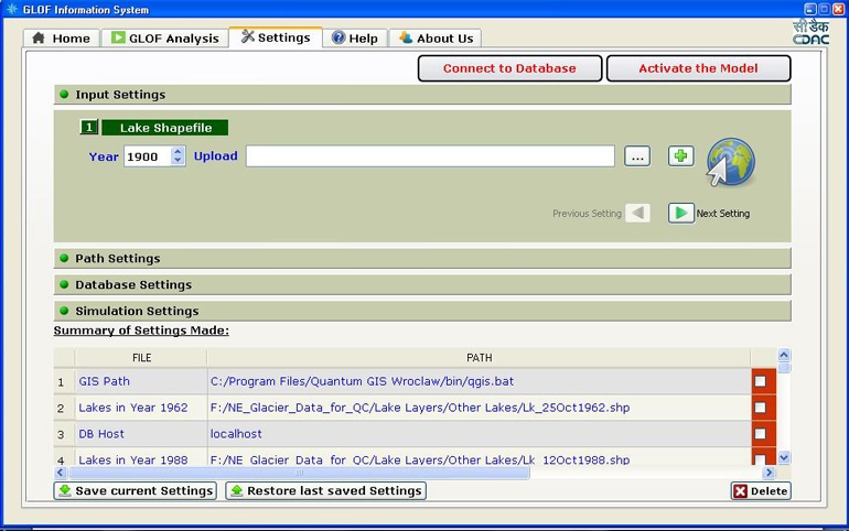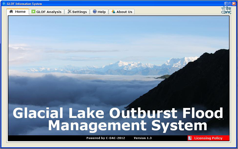 Through extensive research, CDAC has deployed India's first GLOF Early Warning System for Sikkim to predict GLOFs, which will help the Government authorities in case of an impending GLOF event. The GLOF Early Warning System has the following capabilities: